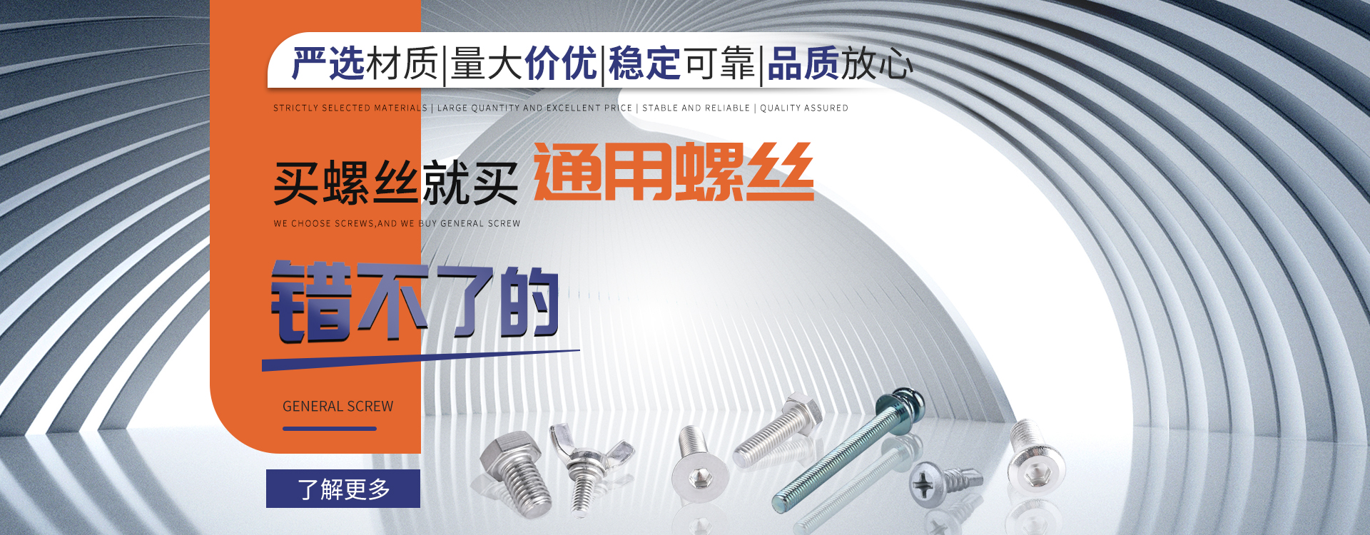 中山市通用螺絲制造有限公司成立于1987年,工廠坐落于廣東四小虎之一的中山市,北連廣州,毗鄰港澳??傉嫉孛娣e14000m 2,足有兩個足球場。我司于1998年通過德國萊茵TUV ISO9002認證,于2002年通過TUV ISO9001:2000認證。2008年通過ISO 14000認證。我司主營自攻螺絲、組合螺絲、機械螺絲、防松螺絲等標準和非標準件,我司既可按客戶的要求提交所需的產品,也可以為客戶量身定做所需產品。我司擁有專業的產品檢測隊伍和投影分析儀、金相、硬度計(韋氏和洛氏)、扭矩力測試計等完善的檢測設備,為電子、電器、五金塑料、衛浴、家具、機械、汽配等行業提供符合歐盟質量、環保要求的產品。2006年,我司自主開發的ERP管理系統,使我們的生產和服務效率得到了極大的提高。 經過三十多年地摸爬滾打,依靠眾多新老顧客的支持,通用螺絲逐漸成長為國內知名的緊固件供應商。了解更多 >>